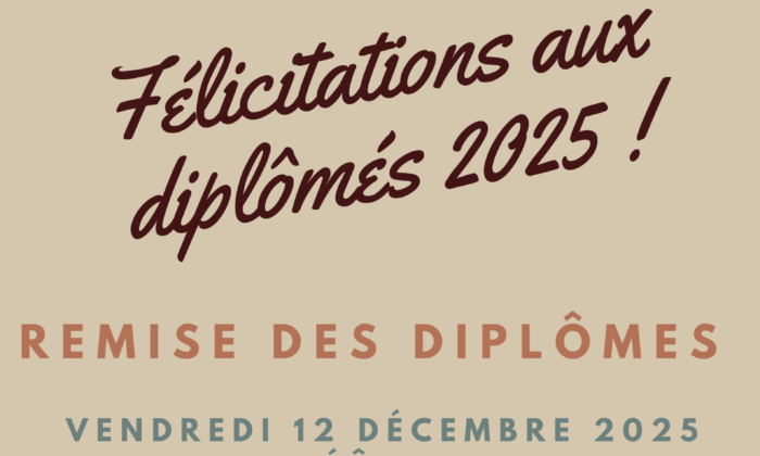 Nous avons le plaisir de vous inviter à la cérémonie de remise des diplômes qui se tiendra le vendredi 12 décembre à 19h 🎉. 🎓 Seront mis à l’honneur :– Diplôme National du Brevet (DNB)– CAPA SAPVER-Bac Pro– BTSA Technico-Commercial–[...]