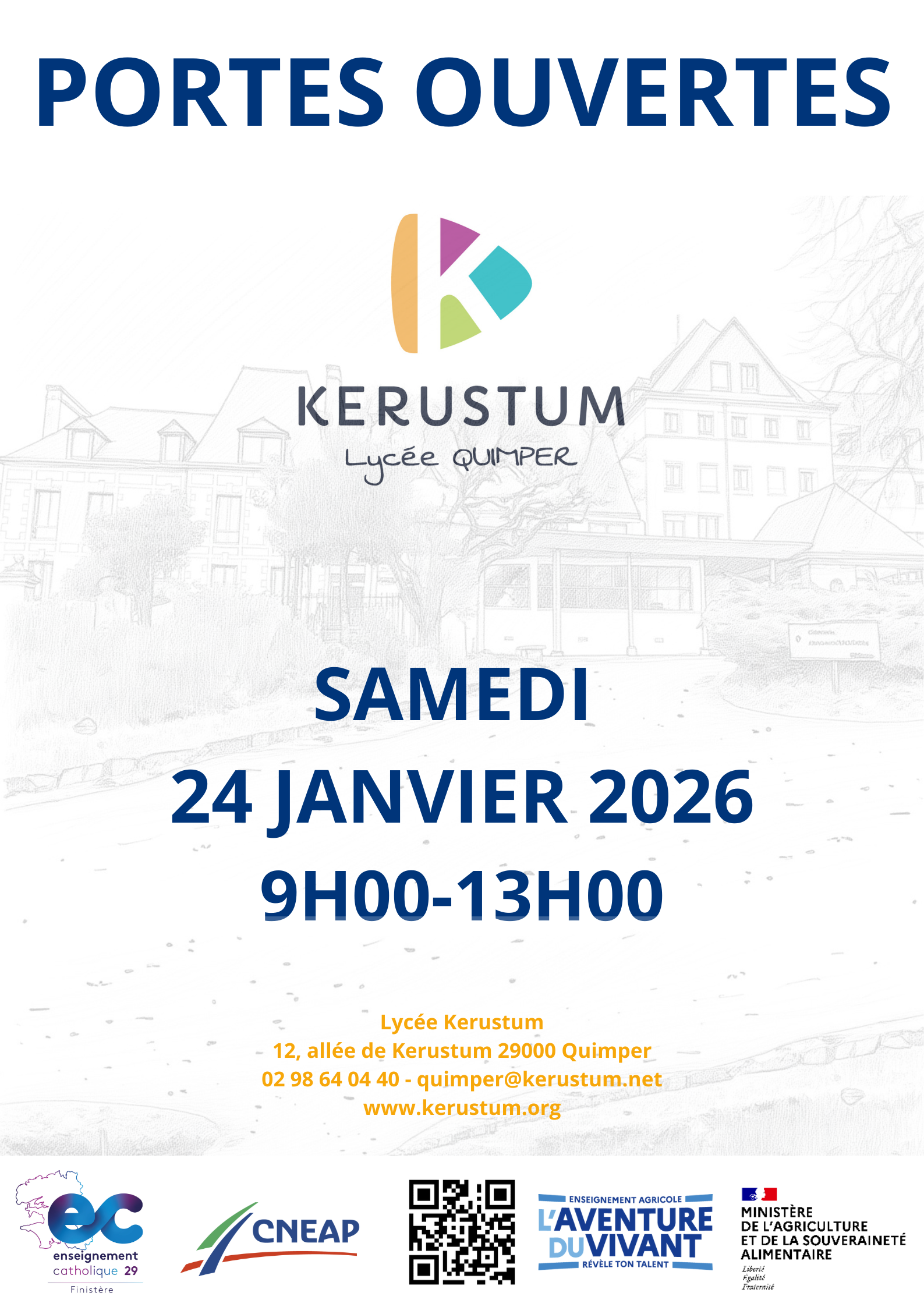 📢 Portes Ouvertes du Lycée Kerustum le samedi 24 janvier 2026 de 9h00 à 13h00 !
