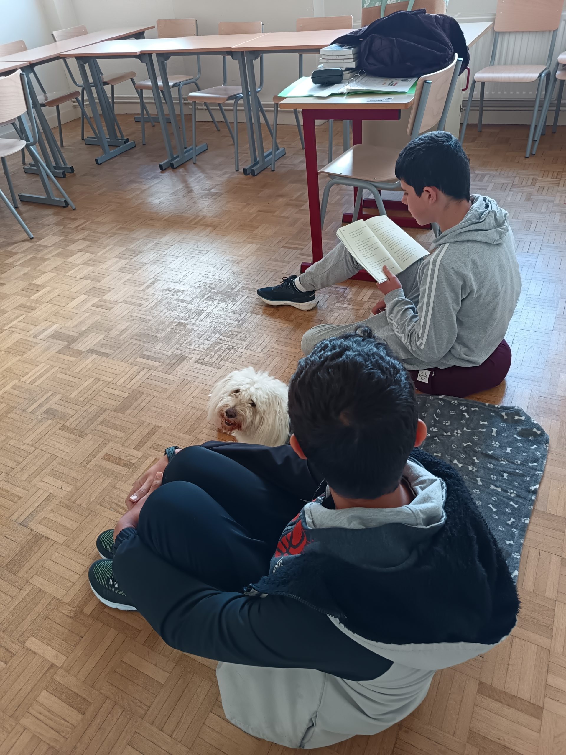 Quelques élèves de 3e ont retrouvé Yuki 🐶, le compagnon à quatre pattes de la médiation animale du lycée, pour une nouvelle séance de lecture au CDI. Chacun a pu choisir un livre 📖 et lire à voix haute en présence de Yuki, toujours attentif et bienveillant.