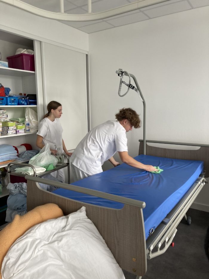 Quelques photos d’un TP Santé des élèves de 2nde SAPAT. Ils avaient pour objectif d’apprendre à faire un lit médicalisé correctement, un geste essentiel dans les métiers du soin et de l’accompagnement.